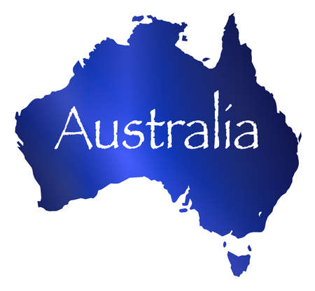 Silhouette map of Australia in blue over a white background