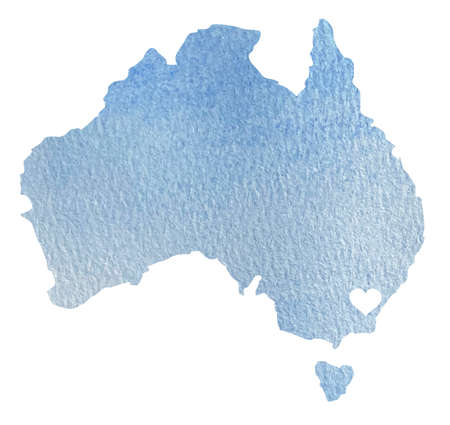 hand drawn watercolor map of Australia isolated on white