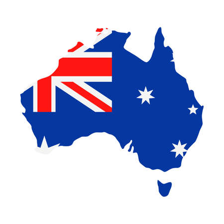 National flag of Australia. Country outline on white background with copy space. Politics illustration.