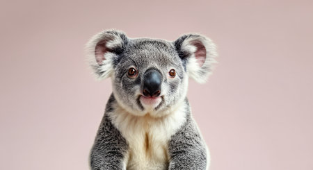 Close-up of an adorable koala against a soft pink background for animal appreciation