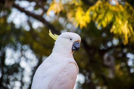Sulphur-crested cockatoo close up. Urban wildlife. Australian backyard visitors