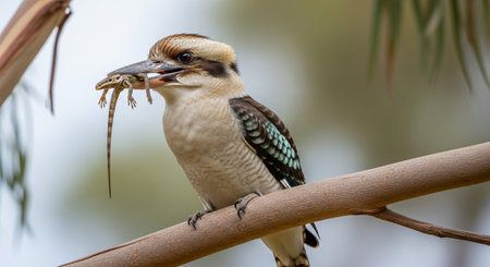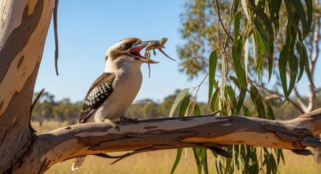 Majestic kookaburra perched on branch in natural habitat for wildlife appreciation