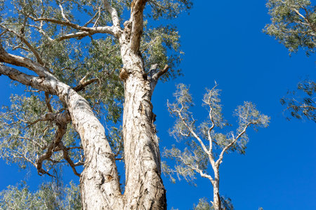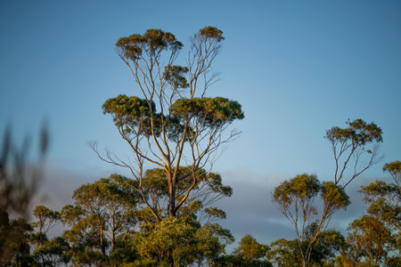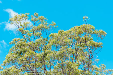 native Australian eucalyptus gum tree outdoor on a sunny day with blue sky