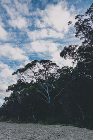 beautiful gum Trees and shrubs in the Australian bush forest. Gumtrees and native plants growing in Australia