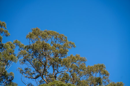 eucalyptus tree view from below with blue sky background,Sydney,Australia