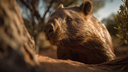wombat on the background of Australian nature, animals of Australia. ai generative