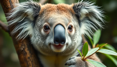 Koala portrait cute marsupial with fluffy fur and expressive eyes generated by artificial intelligence