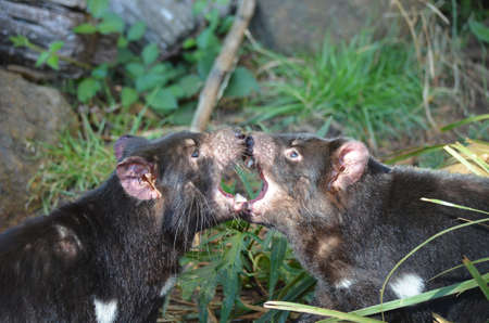 Closeup portrait of the Tasmanian devil Sarcophilus harrisii looking at the camera