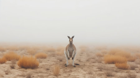 A Kangaroos grazing peacefully in desert landscape under clear sky