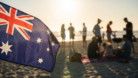 Happy Selebrating the spirit of Australia: a joyful Australia day with flags, kangaroos, and national pride in a festive and patriotic atmosphere. pride, joy, and a sense of unity
