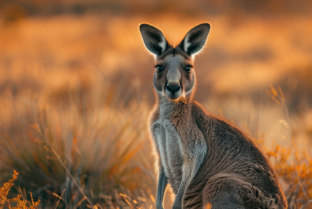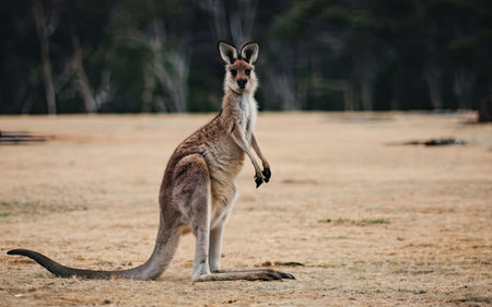 a portrait of a Young Eastern Grey Kangaroo (Macropus giganteus) cute Australian animal. Generative AI