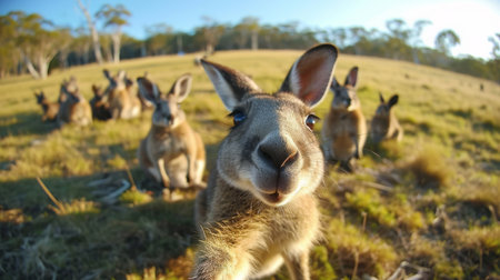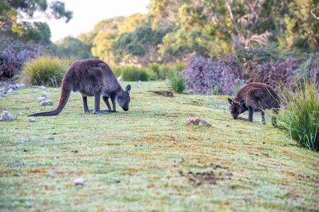 Free Kangaroos in Kangaroo Island on a sunny morning, Australia