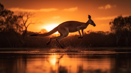 symbol s of Australia the beach and kangaroo a rare sight together and in silhouette