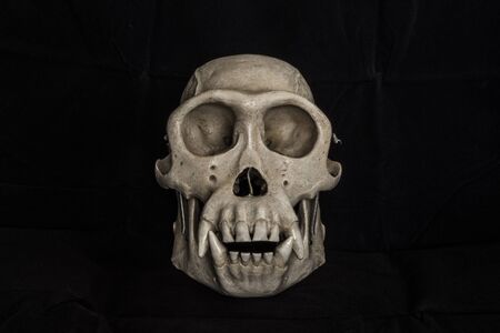 skull, reconstructed skull of australopithecus. archeology and paleontology concept