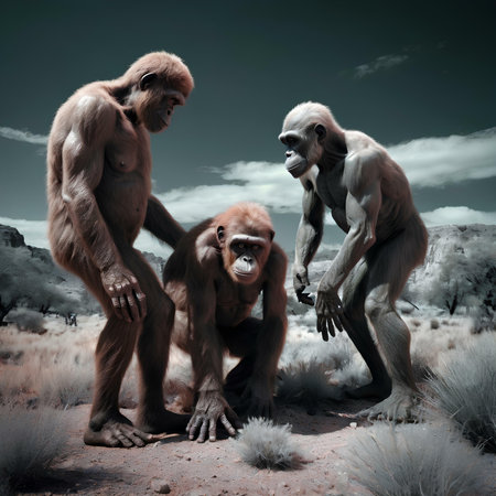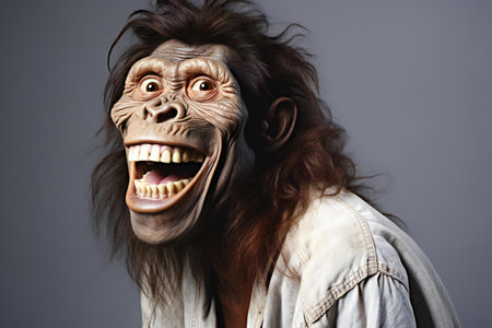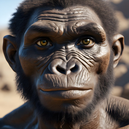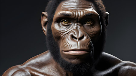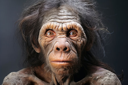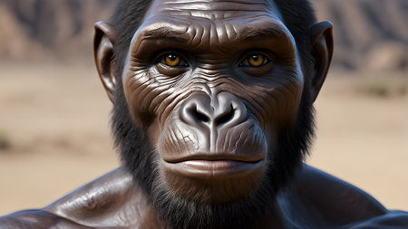 Portrait of a male Homo Erectus, a prehistoric ancestor of humans that lived around 1 8 million years ago - 3D render with digital painting