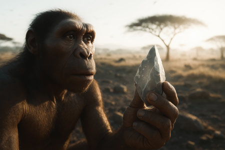 Chronicles of prehistoric life: primitive man, delving into the mysteries of early human existence, tools, culture, and survival in the ancient epochs of our evolutionary past.