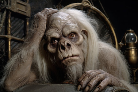 A thinking White hair Mutant cave monster old movie 1960 illustration