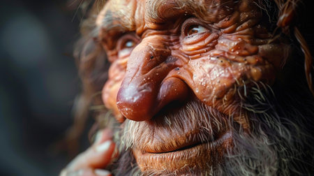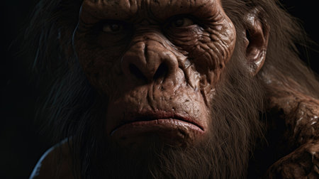 Neanderthal face. Extinct species. One of the ancestors of Homo sapiens. AI generated.