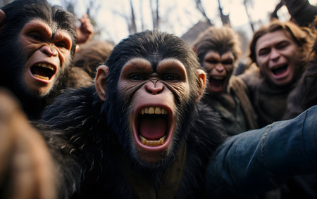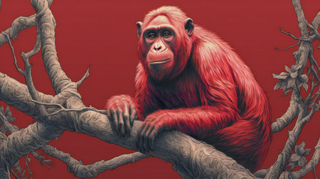 An AI generated illustration of an adult chimpanzee looking directly at the camera