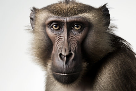 Close up of Baboon with white background very high quality. Generative AI AIG16