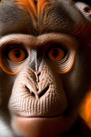 A Close Up Of A Monkey With Orange Eyes. Generative AI