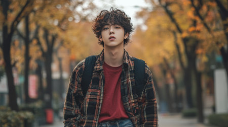 Teen Chinese Man with Brown Curly Hair creative poster.