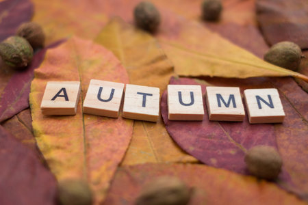 The word autumn is written in wooden letters on a wooden background. Autumn concept and calendar concept. Copy space