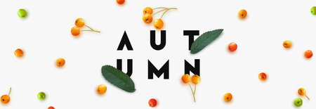 Autumn composition. Banner made of dry autumn leaves, berries, fruits and flowers