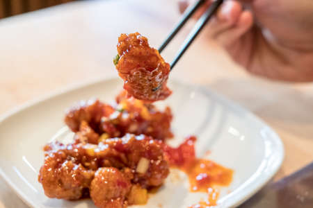 chinese cuisine, sweet and sour pork with sweet and sour sauce