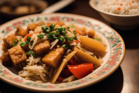 Chinese food, Stir-fried Tofu with rice and vegetables