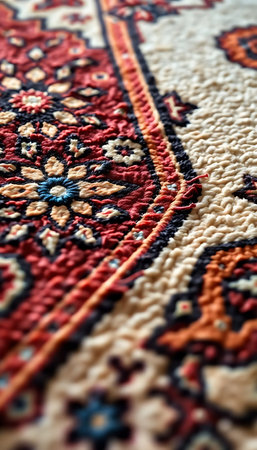 Intricate patterns and rich texture of woven carpet showcase craftsmanship