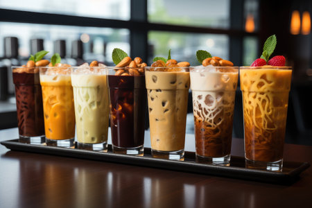 collection of iced teas and coffees, each with a unique blend of flavors and spices, created with generative ai