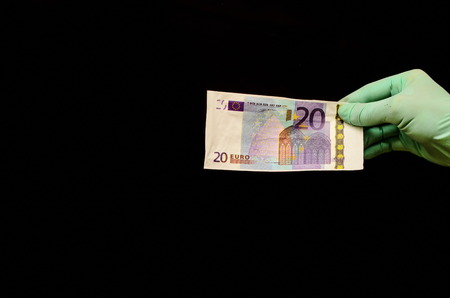 Selective focus on detail of euro banknotes. Close up macro detail of money banknotes, 20 euro isolated. World money concept, inflation and economy concept