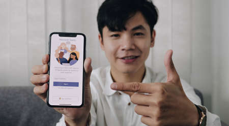 CHIANG MAI, THAILAND - Jan 30, 2022 : Female A working from home employee is downloading the Microsoft Teams social platform, ready for remote working in isolation from home.