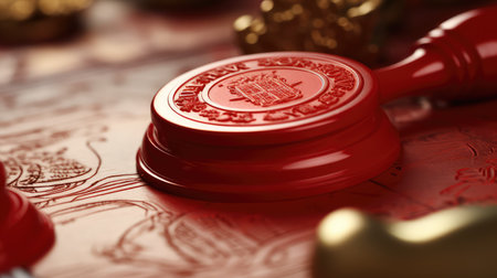 A close-up shot captures the moment a traditional brass stamp is pressed onto a document, creating an elegant wax seal.