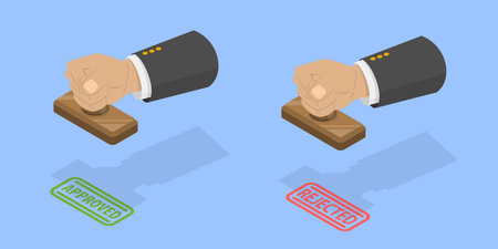 3D Isometric Flat Vector Illustration of Approved And Rejection Stamps , Paper Document