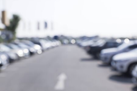 Car auto dealership. Themed blur background with bokeh effect. New cars at dealer showroom. Prestigious vehicles.