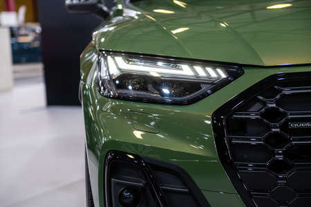 Riga, Latvia, April 29, 2022: LED headlights and car back design of nev Audi Q5 SUV, model 2022, car exterior design