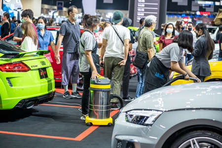Nonthaburi, Thailand - DEC 12, 2020: Unidentified model poses with a car at The 37th Motor Expo Thailand 2020 at IMPACT Arena, Muang Thong Thani, Nonthaburi, Thailand.