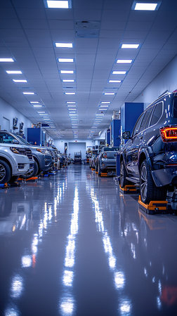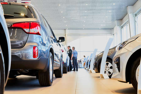 new cars in showroom interior blurred abstract background