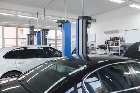 Interior of a modern car repair station. Auto service industry.