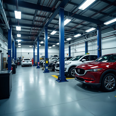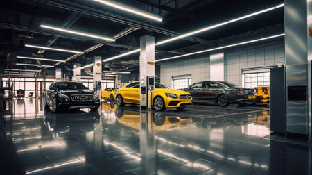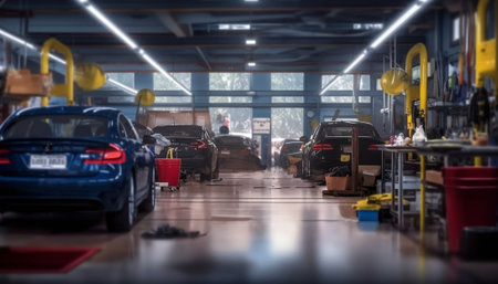 Generative AI : Blurred service car center for background Car garage