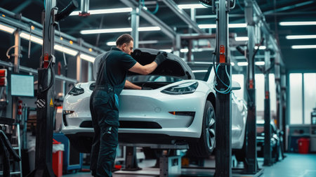 A mechanic fixing a car in an automotive factory AIG41