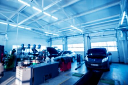 Auto repair service. Auto service background. Blurred background.