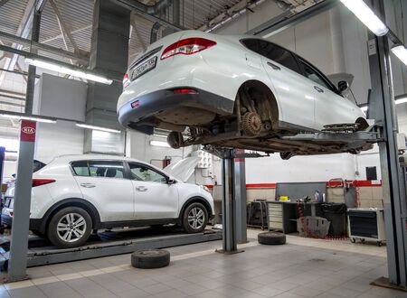 Voronezh, Russia - May 30, 2019: Passenger car on a lift service center