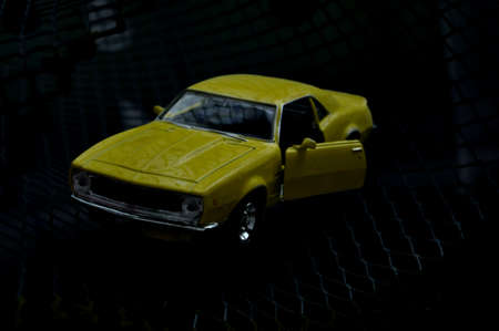 Kharkov, Ukraine - February 24, 2021: Detailed Ferrari sport car toy close up, F430 Spider, background with macro car aspects, copy space banner photo