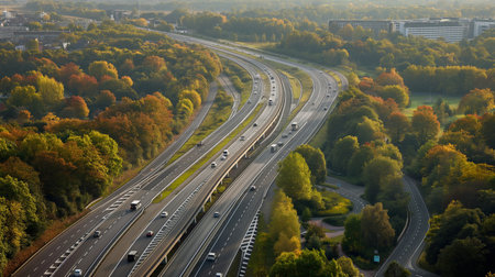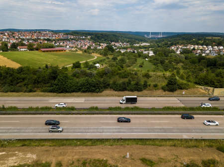 Aerial view of a highway in Germany with cars on the road