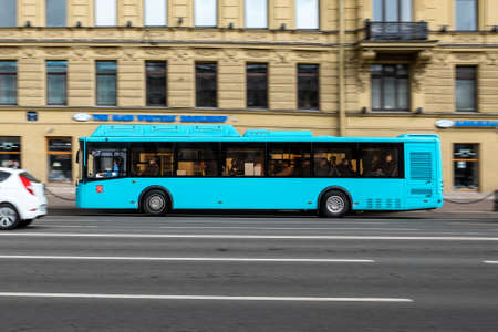 Saint Petersburg, RUSSIA - July 08, 2018: Tourists go to the tour bus and look out the window. Tourism in St. Petersburg, Russia.