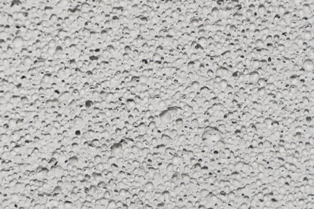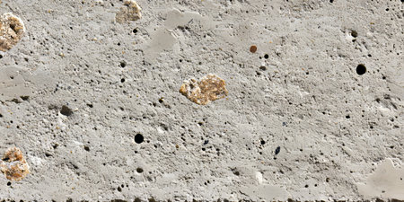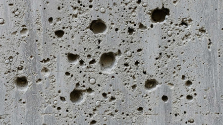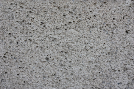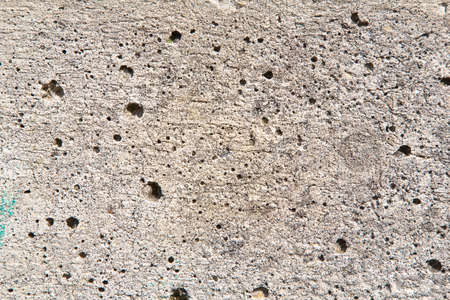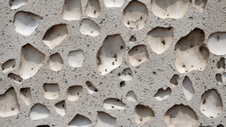 Detailed view of a weathered concrete surface showcasing its porous texture with varied sized voids and embedded air pockets