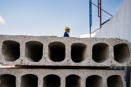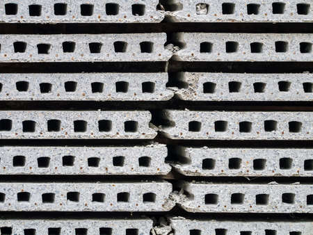 Sunlight and shadow of building structure on stack of concrete blocks surface